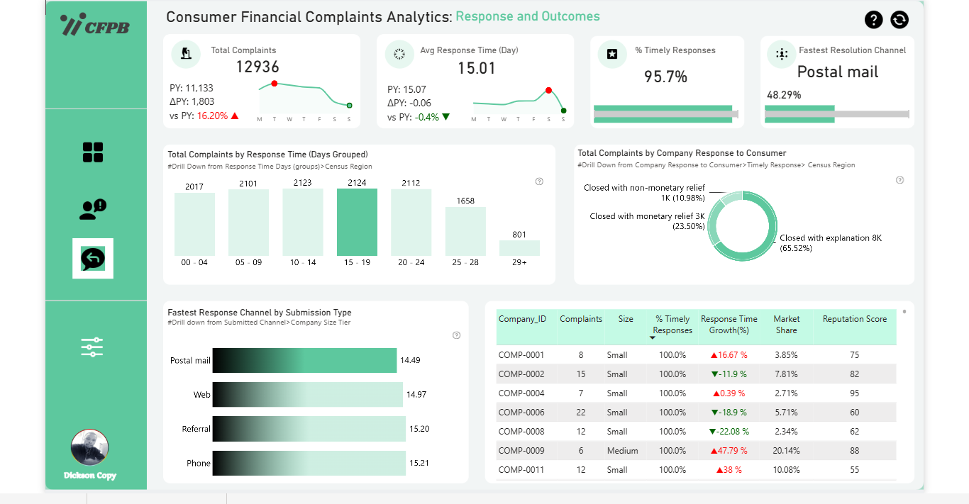 This project explores customer complaint patterns to uncover key insights across time, geography, products, and company behavior. The goal is to help stakeholders identify complaint trends, understand their drivers, and assess how effectively companies respond to consumer concerns.