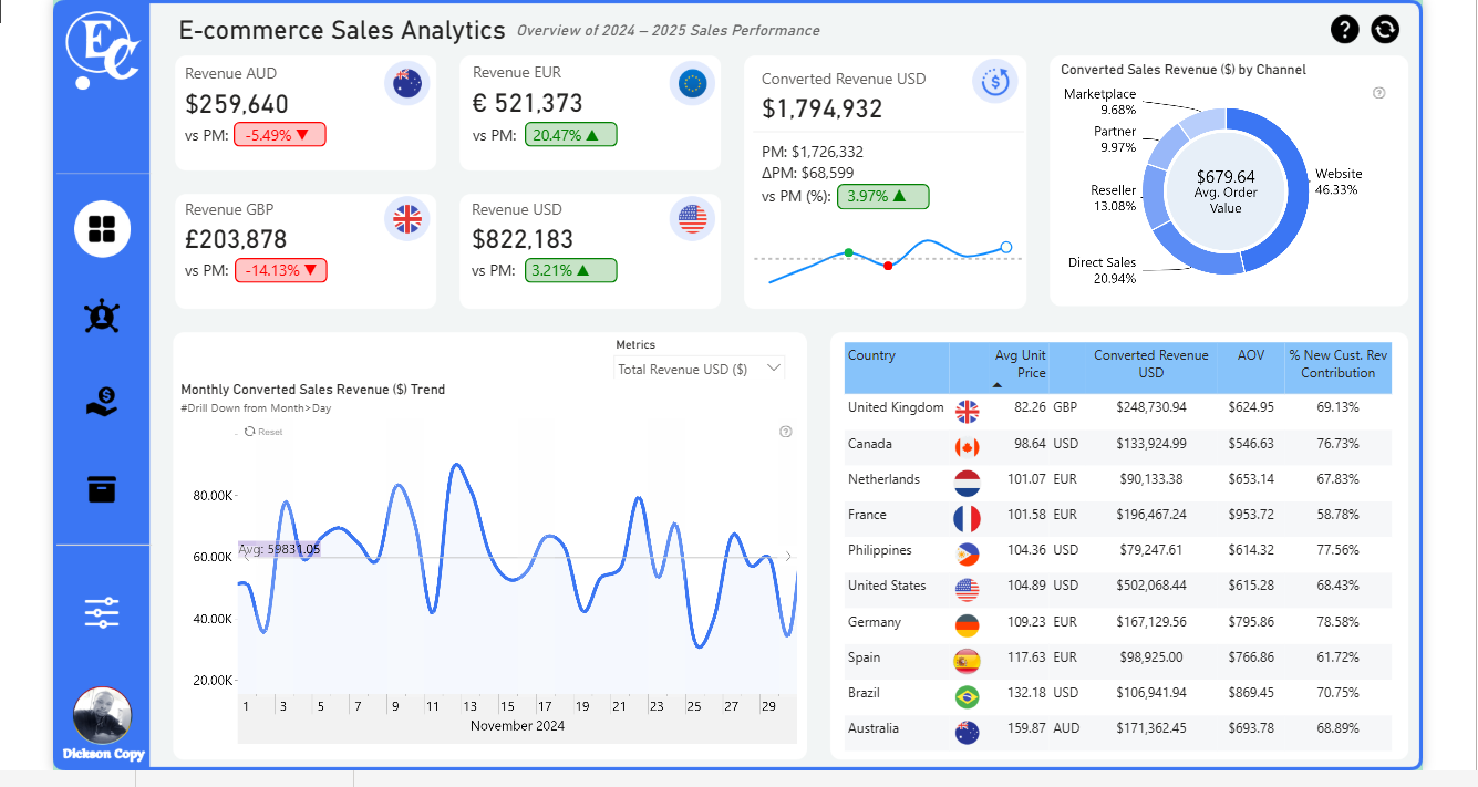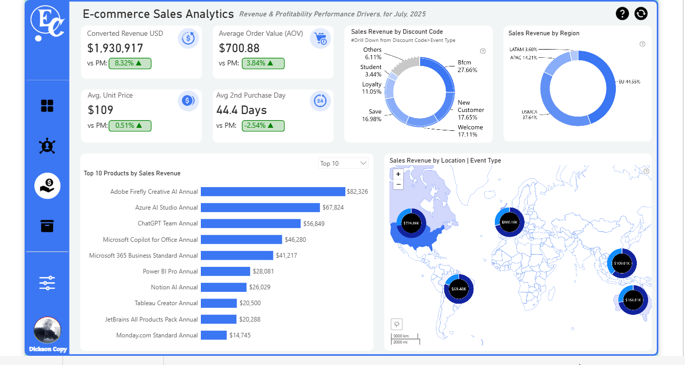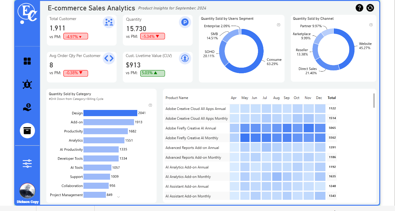 The report focuses on monthly sales trends, customer behaviour, revenue and profitability drivers, and the fastest-selling products.