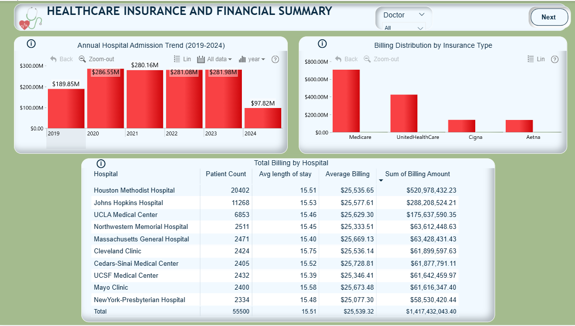This Power BI dashboard provides a comprehensive analysis of patient demographics, healthcare service utilization, and clinical trends. The project emphasizes intuitive navigation, user experience, and dynamic data storytelling. Key Features: 1. Multi-page layout covering patient volumes, service categories, finance and treatment outcomes. 2. Interactive charts with drill-down capabilities and tooltip overlays for guided exploration. 3. Integrated KPIs, bookmarks, and info buttons for enhanced usability and insights delivery. 4. Focused on real-world application: supports healthcare decision-making through clean, accessible visuals. Tech Stack: Power BI, DAX, Power Query, Data Modeling, UX/UI Design