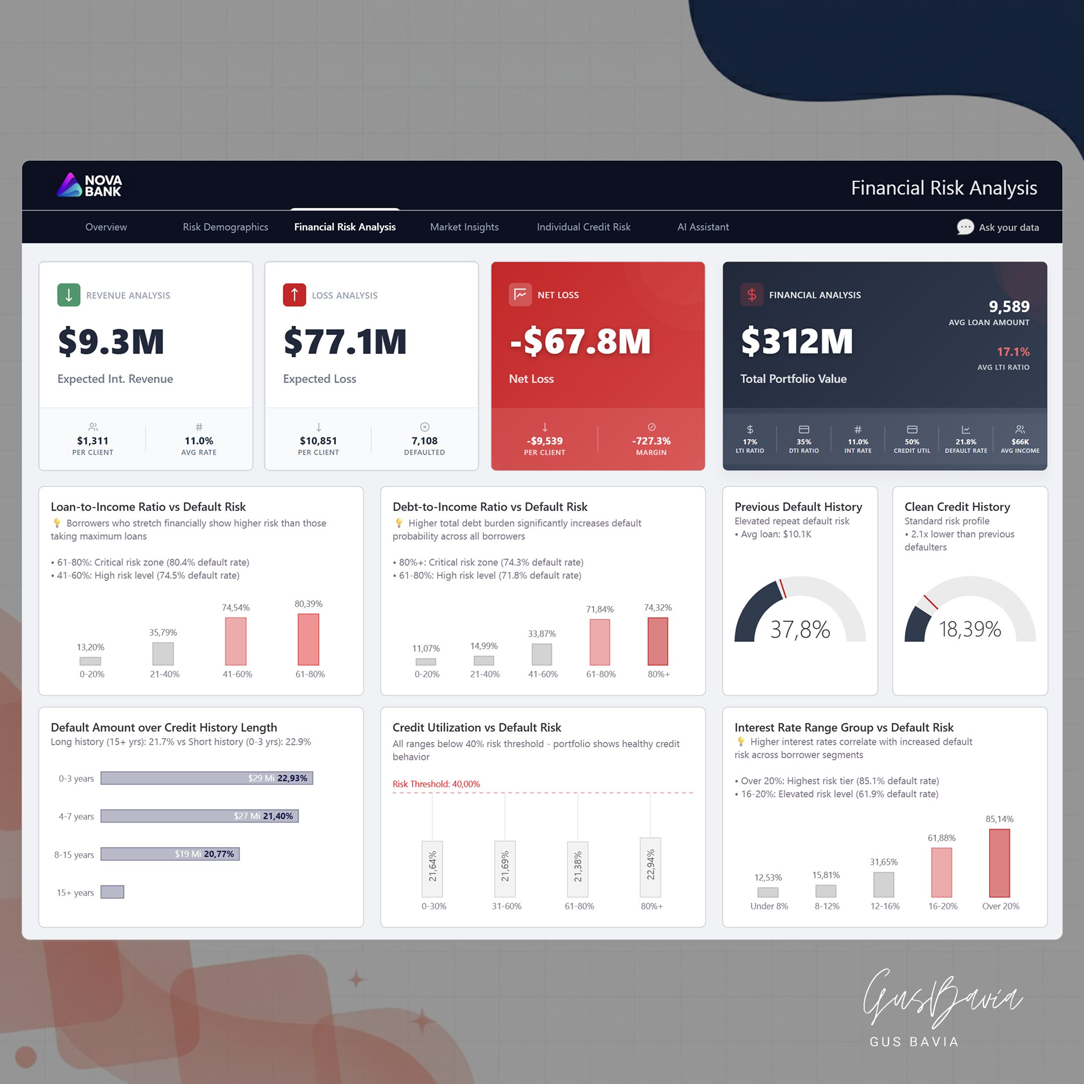 This submission presents a comprehensive 7-page credit risk analytics platform developed for the DataDNA September 2025 Challenge by Onyx Data. The solution addresses Nova Bank's critical challenge of balancing lending accessibility with risk management across USA, UK, and Canada markets. This platform transforms complex credit data spanning 32,581 clients into actionable insights through innovative visualisation techniques and AI-powered analytics.