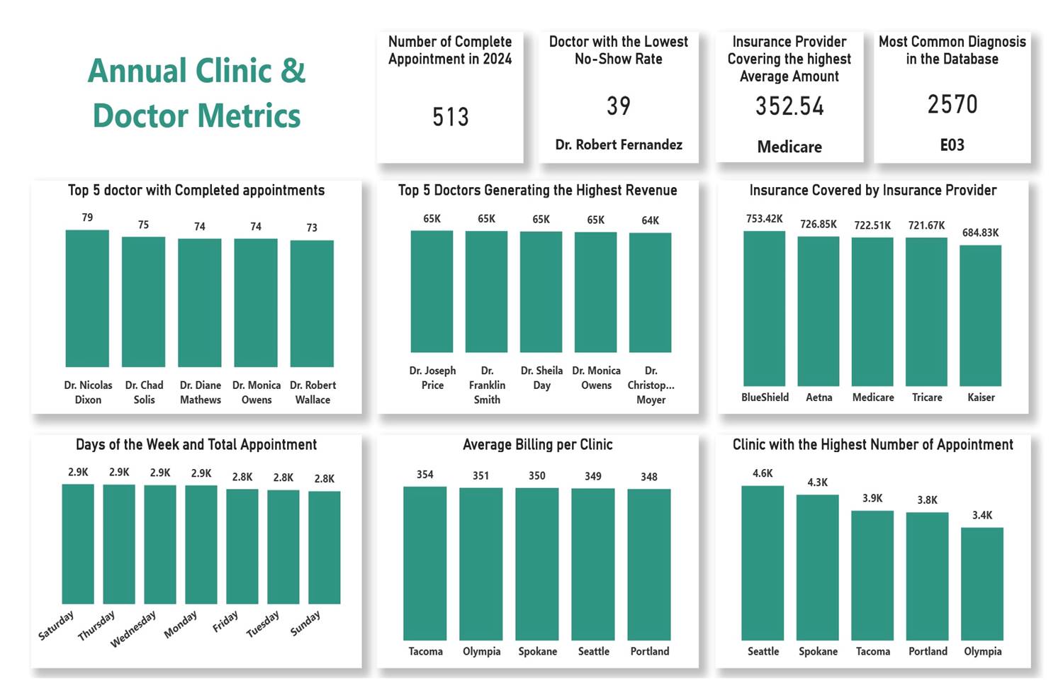 This project leverages a PostgreSQL database and Power BI to analyze the healthcare operations of Health Data, managing a dataset of 5,000 patients and 120 providers. The analysis identifies key clinical risks—such as high diabetes prevalence (30%) and early-onset hypertension—while pinpointing operational bottlenecks where specific doctors manage workloads 4x higher than the average. By correlating billing data with insurance types, the project also highlights significant financial vulnerabilities for underinsured patients, providing a data-driven roadmap to optimize doctor scheduling, expand chronic care programs, and improve financial counseling strategies.