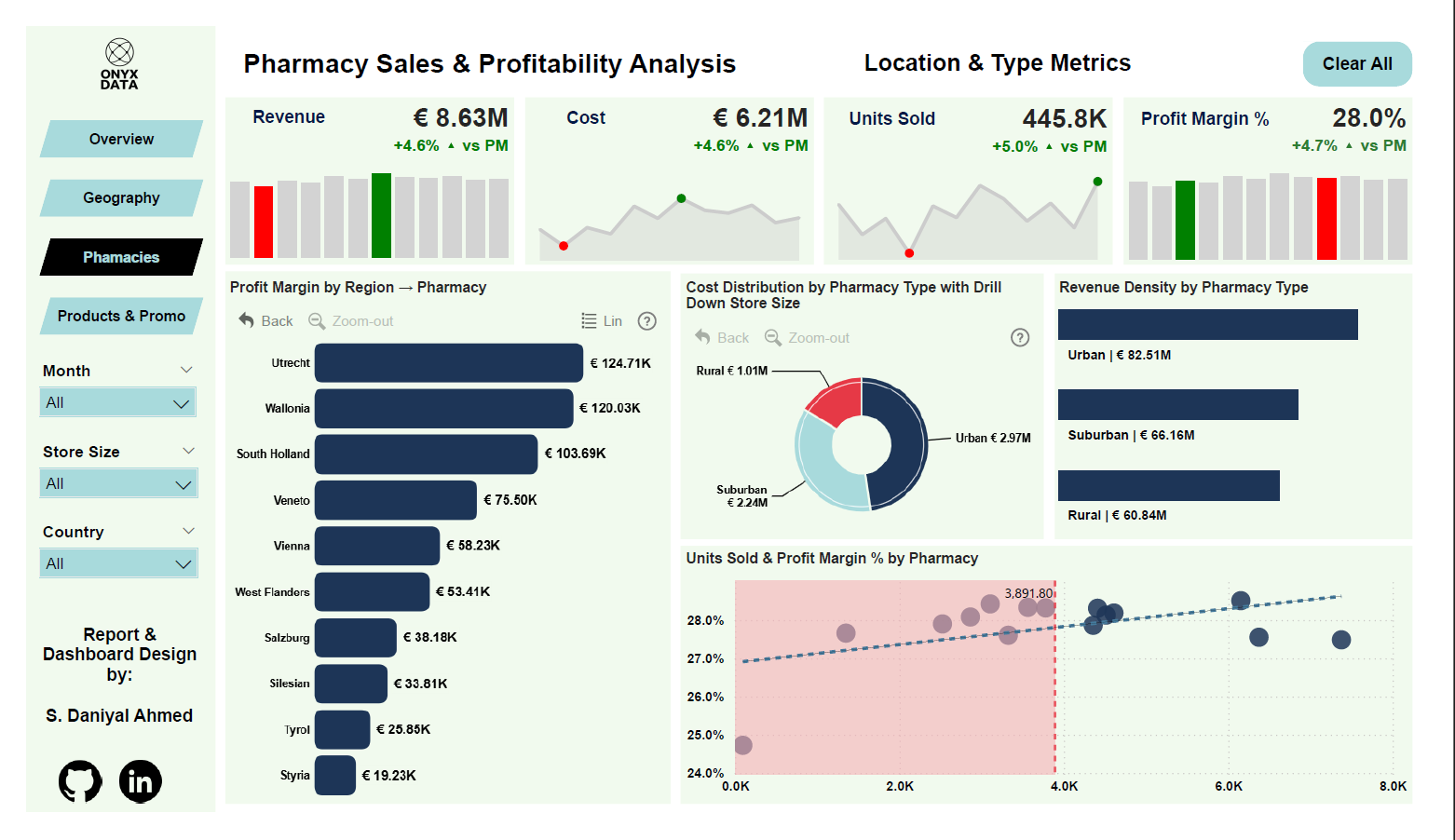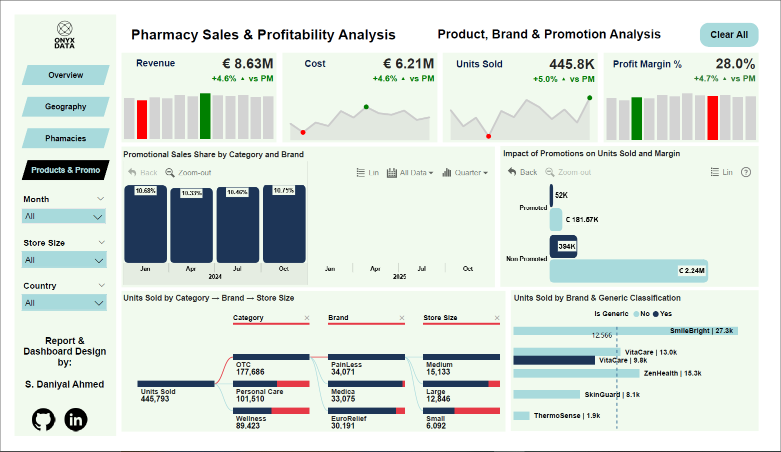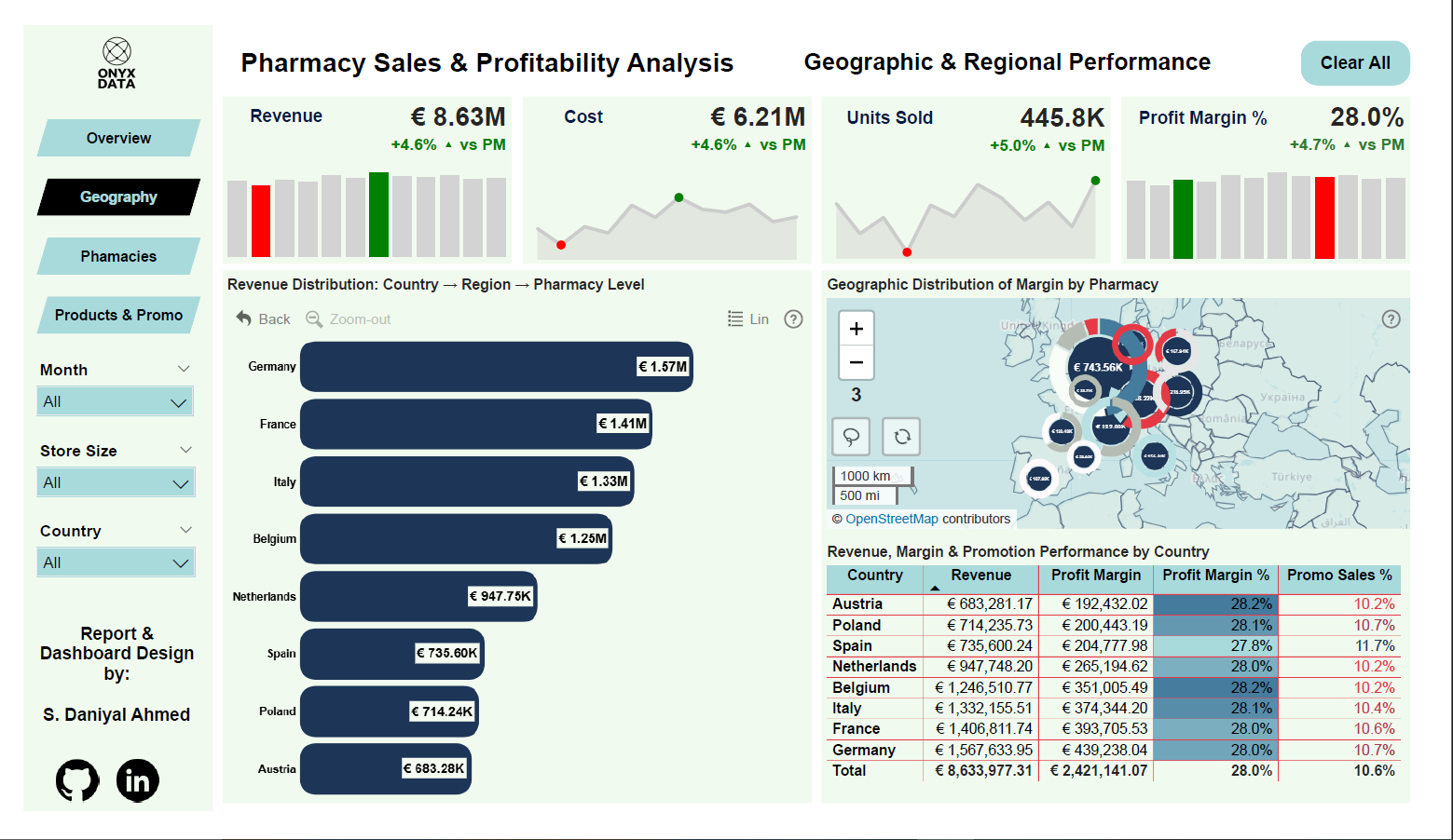 The project focuses on uncovering actionable insights from pharmaceutical retail data across Europe, with a strong emphasis on revenue performance, cost structure, profitability, and promotional effectiveness.