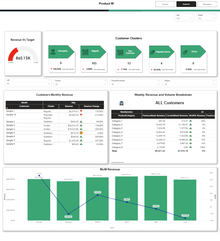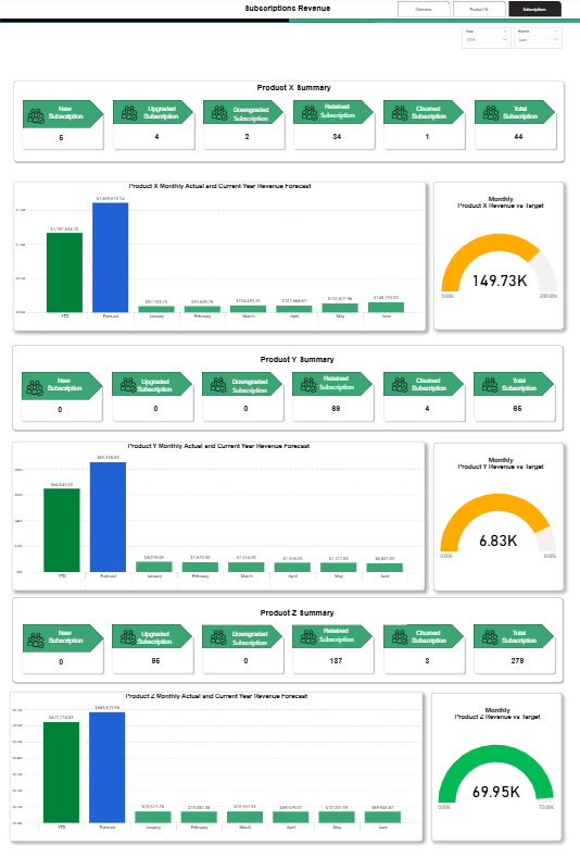 Sales Dashboard - Monthly and Yearly view for Production and Subscriptions